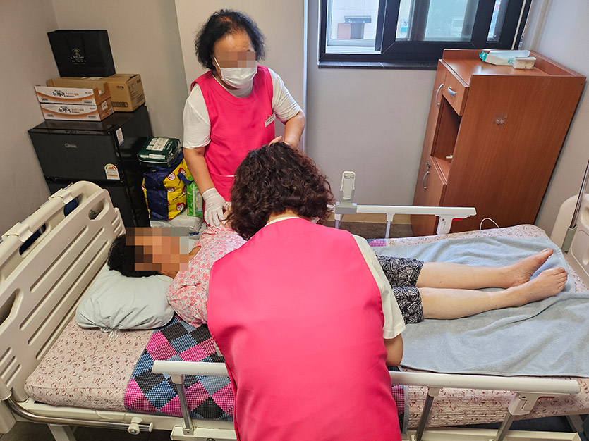 환자분들을 위해 아로마 마사지와 기도를 해드리며