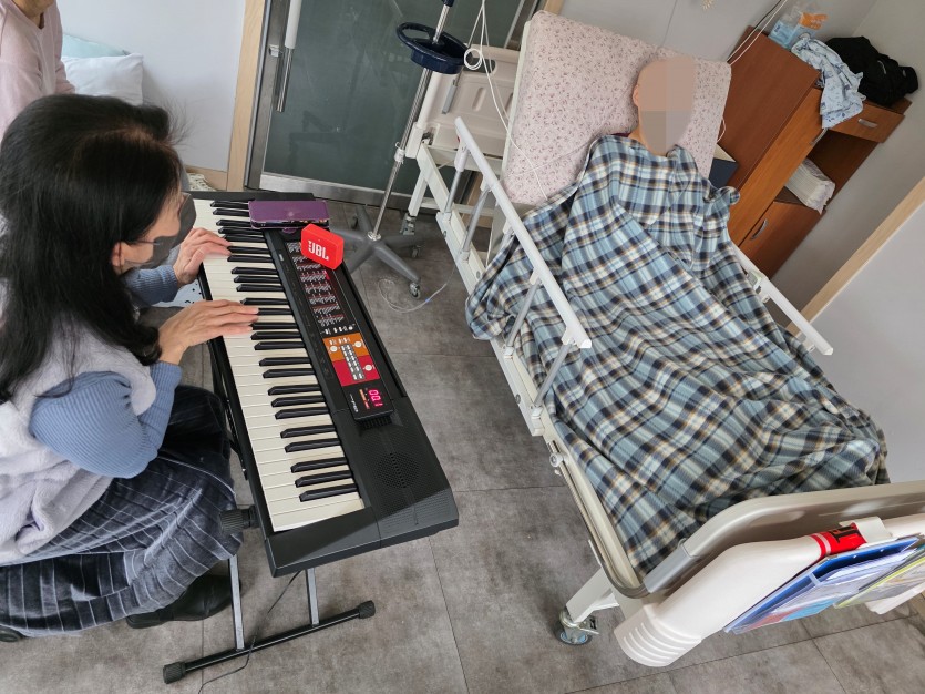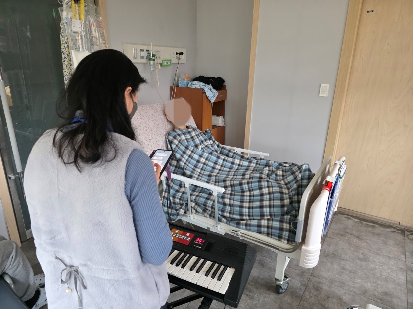 음악강사분이 오셔서 음악치료 프로그램을 진행하고 있습니다.