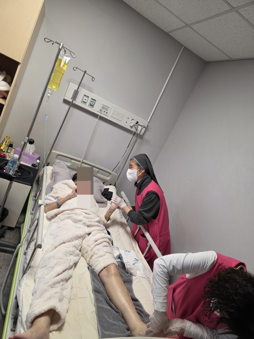 환자분들을 위해 아로마 마사지와 기도를 해드리며